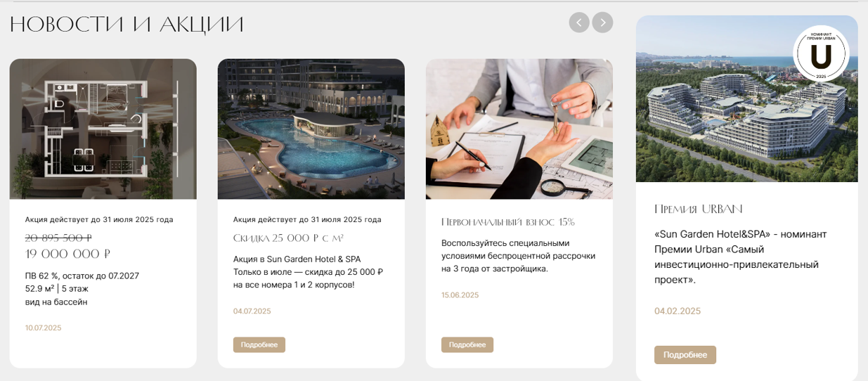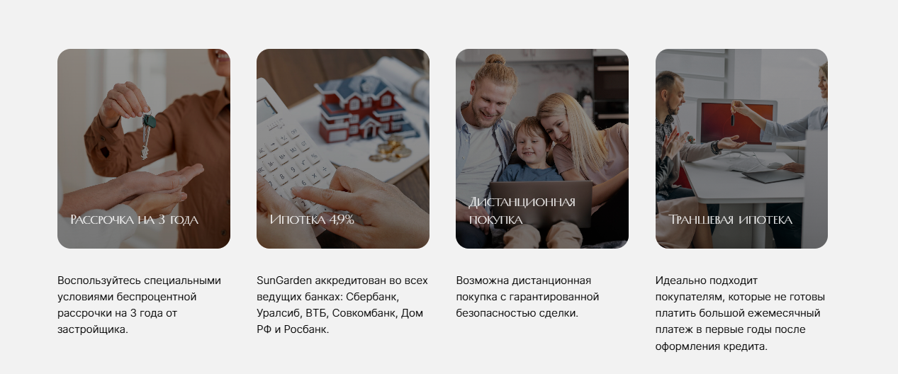 На сайте красивые фотографии, виртуальные туры, выгодные акции и рассрочки, создающие ощущение надежности и выгоды. Все условия звучат заманчиво: можно жить или сдавать в аренду, рост стоимости гарантирован.