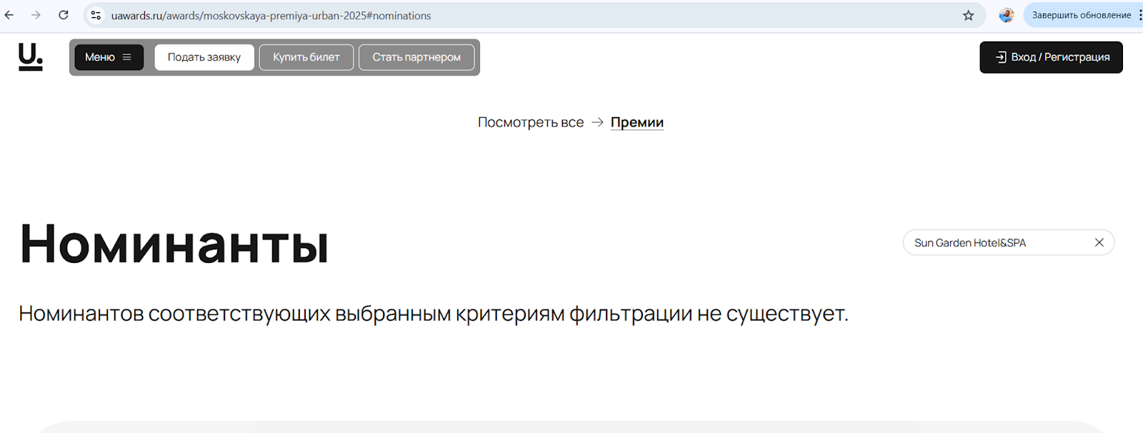 Однако по факту, проекта Sun Garden нет среди списков номинантов. Такое самоназначение — типичный прием для создания иллюзии доверия и статуса. Премия Urban действительно существует и заслуживает уважения, а отсутствие проекта в официальных ее перечнях, ставит под вопрос честность заявлений и уровень прозрачности.