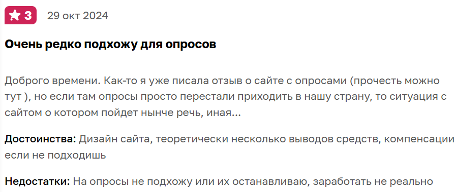 В интернете много отзывов от пользователей проекта Бухта опросов Survey Harbor com, которые пытались превратить его в способ заработка. Есть негатив от тех, кто так и не дождался ни одного опроса.