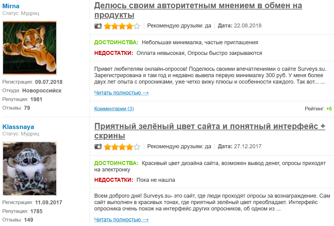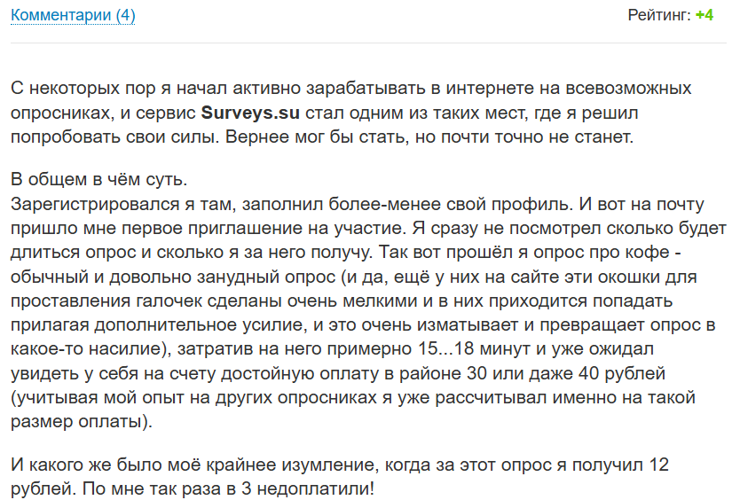 В интернете множество отзывов об опроснике Surveys su. Есть положительные комментарии от тех, кому все нравится: