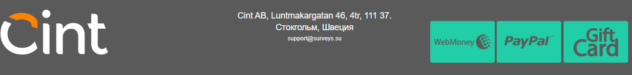 Опросник Surveys su запустили в 2015 году, его владельцем на сайте указана компания Cint AB из Стокгольма. У сайта стандартная легенда: он проводит опросы мнения потребителей для компаний-заказчиков. Он якобы работает с маркетинговыми агентствами со всего мира.