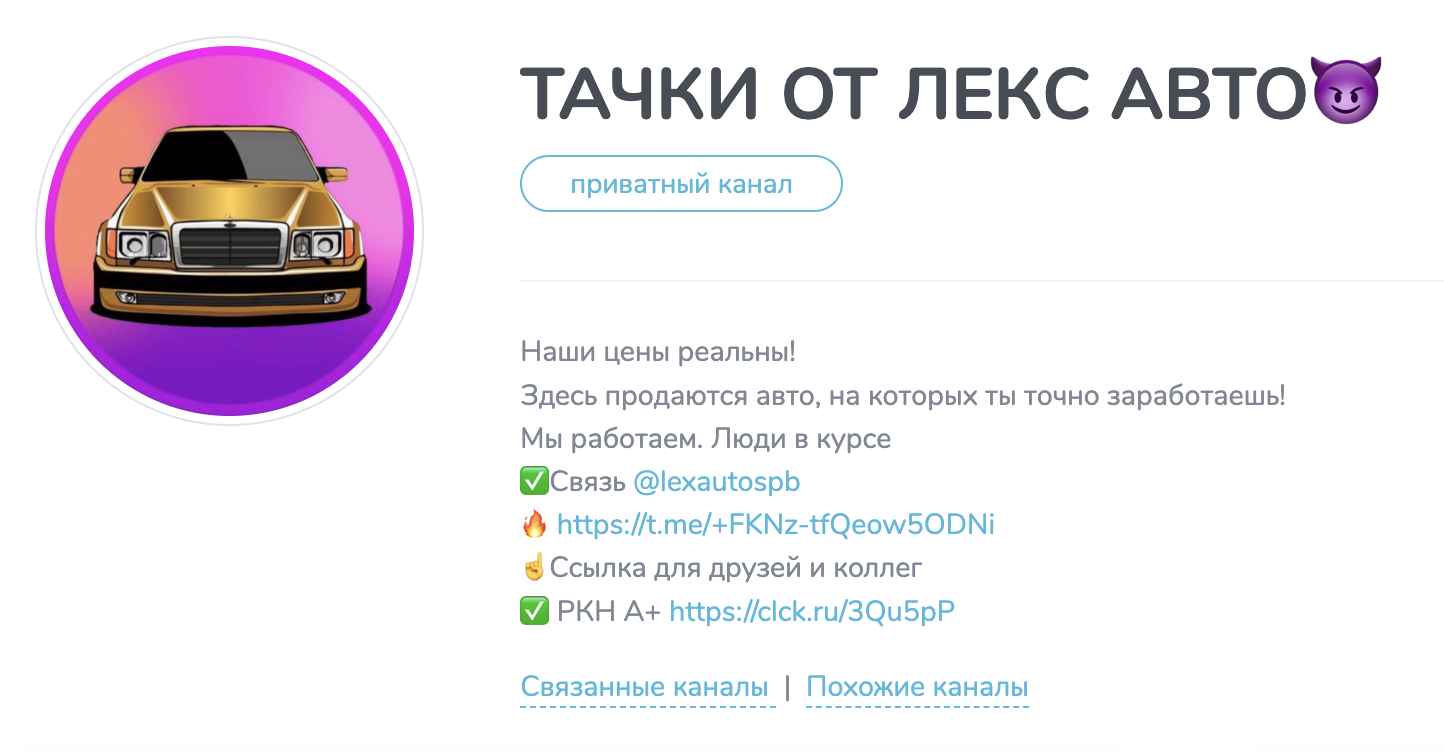 Так, телеграм канал Тачки От Лекс Авто представляет собой сомнительный проект с агрессивной маркетинговой подачей и несовпадением реальности с ожиданием. Здесь можно удачно купить автомобиль или заработать на перепродаже, но только если вы понимаете риски. Плюсы: