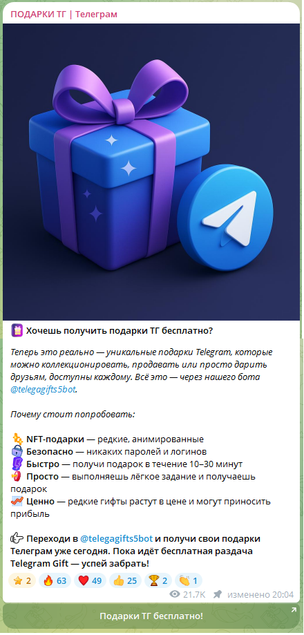 Почему телеграм-канал «Подарки ТГ Телеграм» — это обман