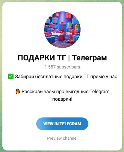 Подробная информация о ТГК «Подарки ТГ Телеграм»