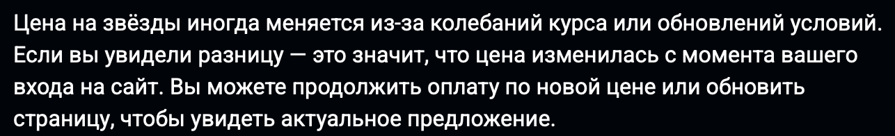 Так как речь идет о внутреннем токене телеграм, стоимость звезд не статична. Она меняется в динамике согласно валютным курсам и регулярно обновляется.