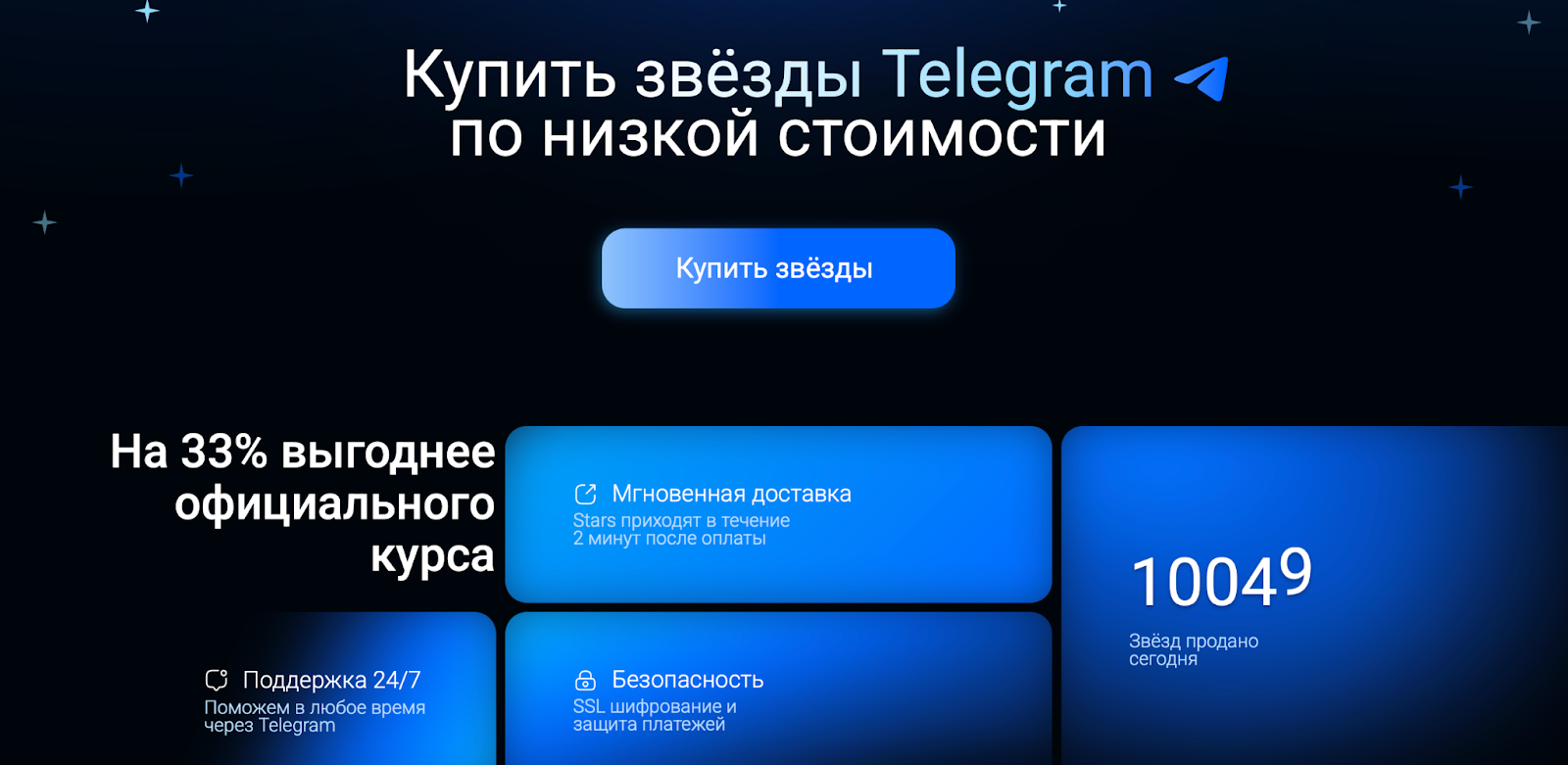 Проект tg stars com — очередной сервис по продаже популярных телеграм «звезд», который на первый взгляд кажется вполне простой платформой. Сервис рекламируется как современный, быстрый и выгодный инструмент для безопасной покупки телеграм-валюты, позволяющий также обменивать ее и монетизировать звезды различными способами.