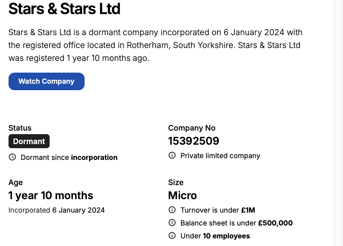 Нашу редакцию смутил адрес, указанный на сайте TG STARS в качестве юридического. В «подвальной» части сайта мы видим некую британскую компанию STARS & STARS LTD. Проверка показала, что никакой взаимосвязи между данной фирмой и сервисом продажи телеграм-звезд нет. Сомнительные проекты часто указывают названия иностранных компаний, пытаясь придать себе больше веса в глазах пользователей.