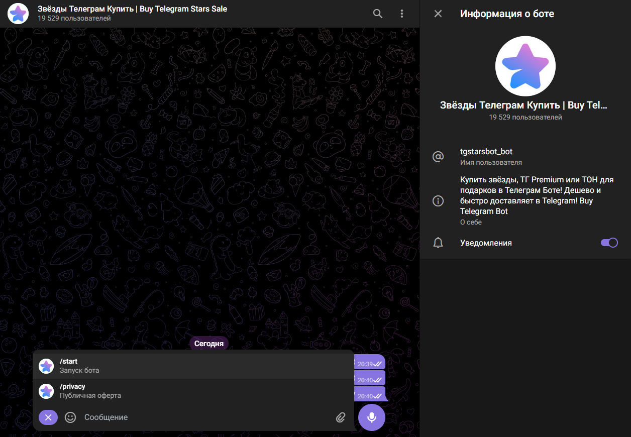 Обзор бота «Звёзды Телеграм Купить | Buy Telegram Stars Sale»: отзывы о TgStarsbot bot, анализ доступных условий обслуживания «ТгСтарсбот»
