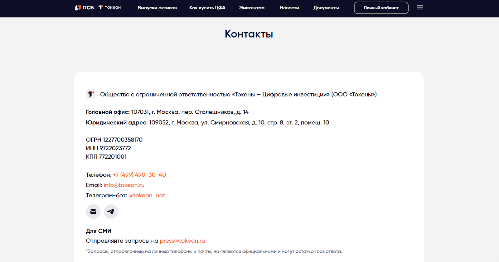 • почтовый адрес press Tokeon ru;