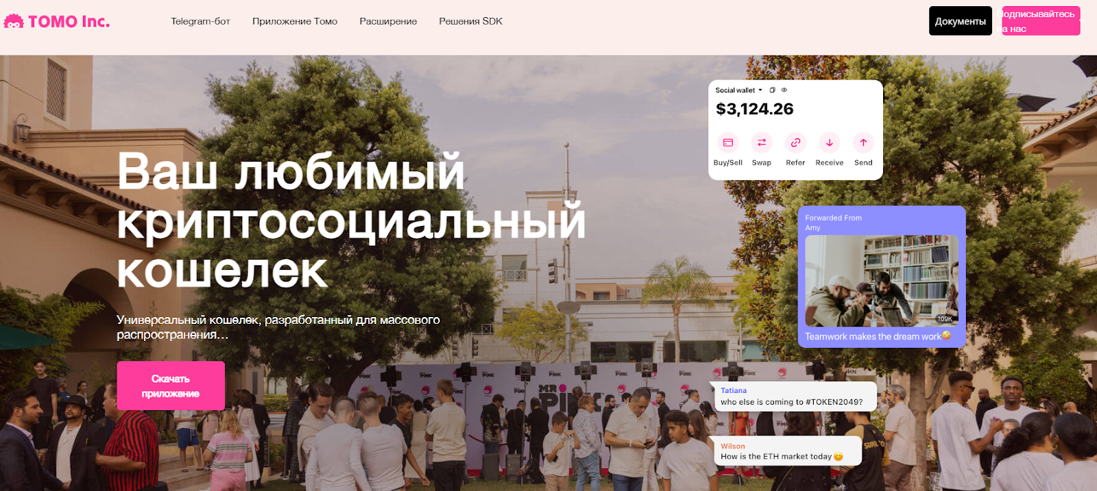 Домен tomo inc зарегистрировали в сентябре 2023 года. Получается, проекту сейчас немногим больше двух лет. Для криптоиндустрии срок небольшой, многие проекты за это время успевают и взлететь, и рухнуть. Но команда Tomo Inc за это время успела выпустить мобильное приложение для смартфонов, расширение для браузера Chrome и даже отдельного телеграм-бота.