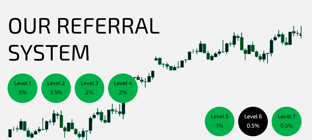 Вот так выглядит реферальная программа компании. Графики сделаны в Paint, как и уровни с доходами.