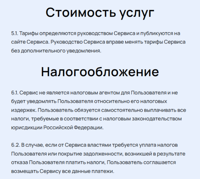 Потенциальным клиентам сервиса «ТуПортал» необходимо внимательно изучить пользовательское соглашение. Ведь в нем говориться о том, что 1% комиссии может быть неокончательным. Так пункт 5.1. соглашения предупреждает, администрация может менять тарифы когда захочет по личному желанию. Пункт 6.2. извещает, собственники платформы могут начислить клиенту дополнительный вычет на уплату неизвестных долгов перед властями.