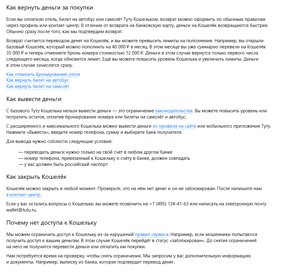 - электронная почта: info tutu ru для общих вопросов и wallet tutu ru для вопросов по кошельку.