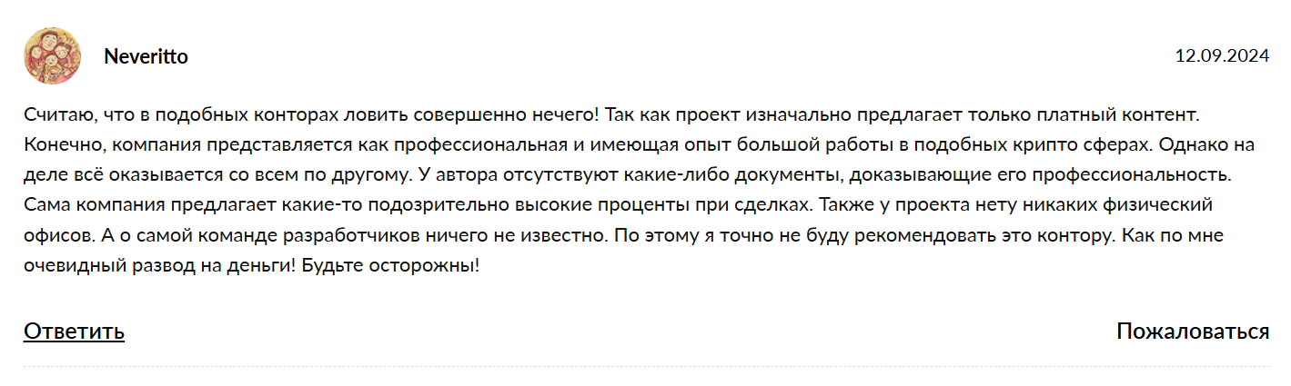 Некоторые пользователи жалуются на создателя ТГ-канала и заявляют о мошенничестве с его стороны. Такие клиенты отмечают потерю денег и не рекомендуют сотрудничество.