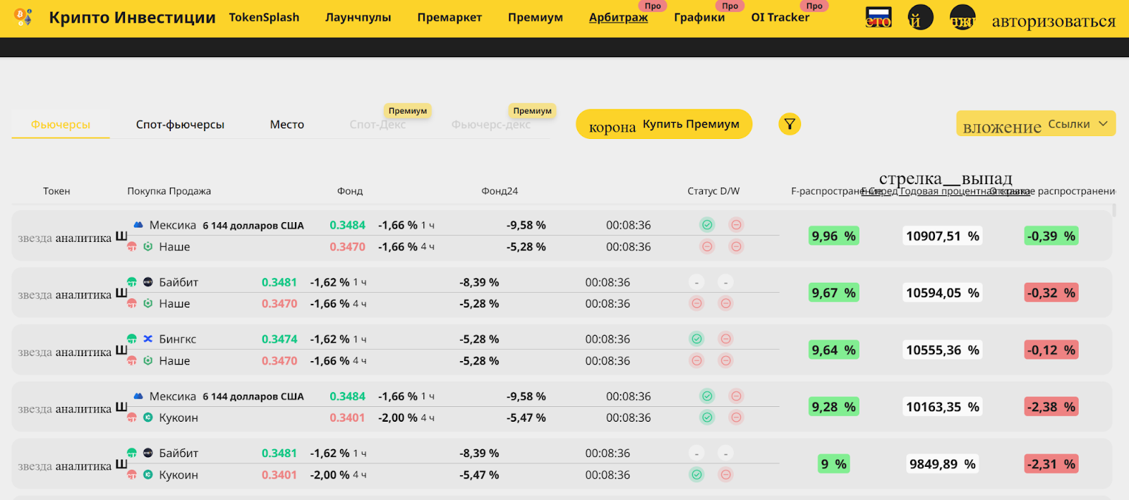 Пользователи платной версии сайта Ua Cryptoinvest получают возможность использовать дополнительные опции. В их число входит арбитражная торговля, графики и Oi Tracker. Для покупки премиального варианта клиентам необходимо заплатить 64 USDT в месяц при покупке пакета на один год. При ежемесячной оплате стоимость будет выше — 64 USDT. За эти средства клиент получает доступ к следующим опциям: