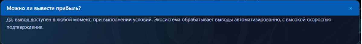 Самое интересное, что нигде нет информации как вывести прибыль. Хотя в перечне популярных вопросов упоминается пункт с выводом прибыли. Но ответ, данный на него, лишь общие фразы и никакой конкретики.