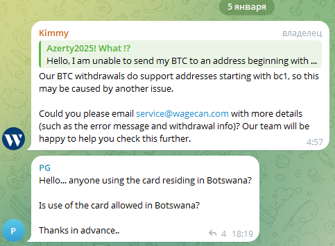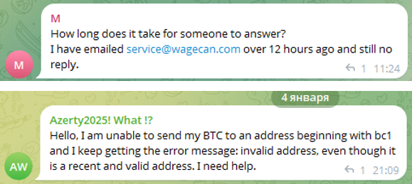 Люди вынуждены ждать часами ответа поддержки, при этом теряя свои деньги. В тг-клубе «ВэйджКэн» опубликовано множество негативных комментариев в адрес платформы.