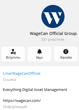 Сообщество WageCan Official Group представляет собой общий чат, участники которого делятся своими мнениями о крипто-системе, а также публикуются новости проекта администраторами комьюнити.