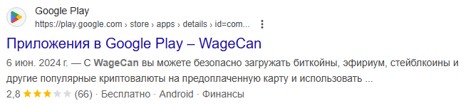 Рейтинг приложения WageCan Wallet для мобильных аппаратов в сети имеет низкий рейтинг.
