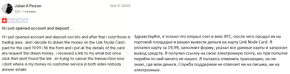 Народ в интернете ставит crypto платформе минимальное количество звезд и высказывает свое недовольство по поводу слишком завышенных сборов.