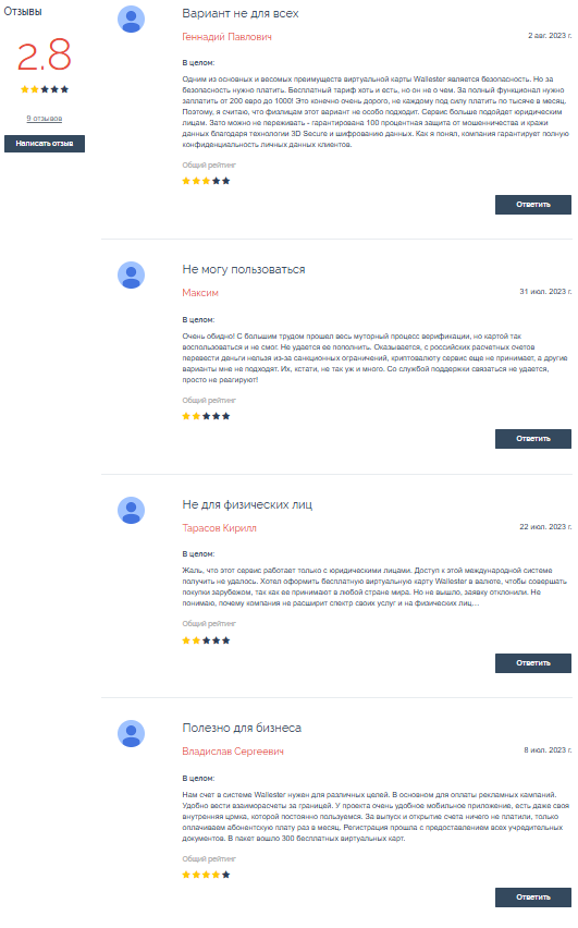 О платежной системе Wallester отзывы в сети противоречивы. Мы увидели и положительные, и негативные комментарии. Среди них не было ни одного указания на мошенничество, то есть пользователи не жалуются на обман и воровство денег. Однако, есть те, кого качество сервиса не устроило. В целом у проекта хорошая репутация, клиентская база растет, а функционал развивается.