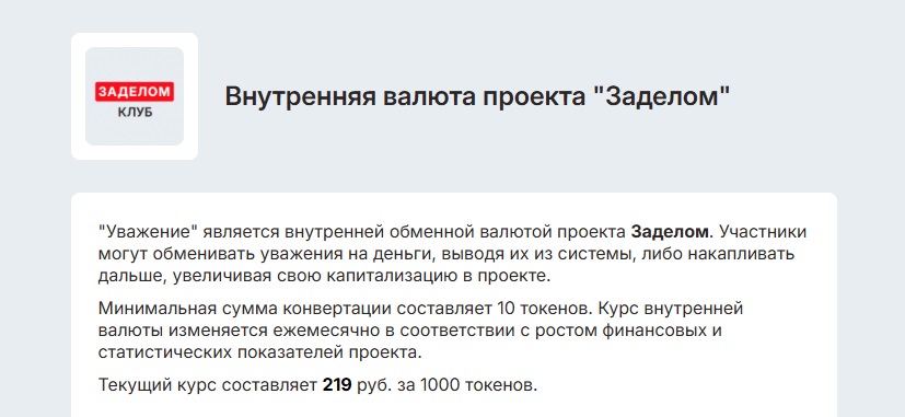 По своей структуре и способу начисления бонусов за просмотры ЗаДелом очень похож на Дзен. Но фактически вся работа по написанию и размещению контента, SEO-продвижению, отзывах и т. д. ведется внутри собственной экосистемы. Внешний трафик незначительный — всего 3,1К пользователей в месяц, среднее время просмотра 42 сек., а показатель отказов более 57%. Для сравнения, на Дзене за месяц 29 млн посетителей, а среднее время просмотра — 9 минут. Начисления на Дзене прозрачные — 30–60 руб. за 1000 просмотров. На сайте zadelom ru такой прозрачности нет: оплата работы зависит от множества факторов, в том числе от личного коэффициента, который снижается даже за то, что пользователь не посещает сайт ежедневно. Более того, все расчёты предусмотрены только в токенах «Уважение», условия их обмена могут меняться.