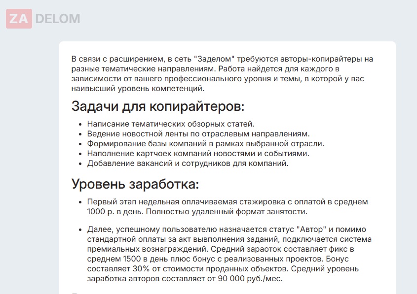 Хотя владельцы стремятся позиционировать ЗаДелом как многофункциональную экосистему для профессионального контент-маркетинга, до этого статуса проект явно не дотягивает. Более того, в его работе наблюдаются явные признаки мошенничества