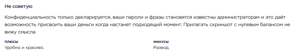 Но встречаются и отрицательные отзывы о «Зенепал Ком». Репутация сервиса пострадала из-за мошеннических действий администратора. Пользователи отмечают, что на сайте аферисты воруют деньги и личные данные клиентов. Они не советуют сотрудничать с криптовалютным кошельком.