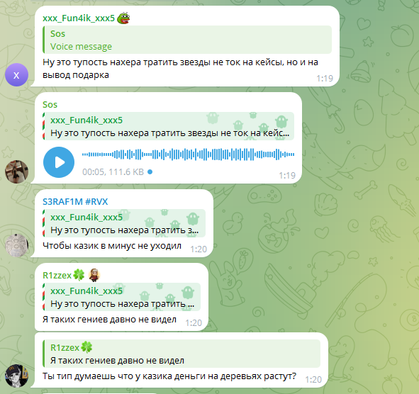 При этом важно отметить и тот факт, что вывести с баланса аккаунта ТОН или звезды нельзя. Вывод доступен только для гифтов. Таким образом получается, что шанс проиграть у пользователя кратно увеличивается. Сначала он может внести средства, поиграть и что-то выиграть в Минере или Ракете, но чтобы хоть как-то вывести свой заработок – ему нужно будет открывать кейсы, которые практически гарантированно срежут размер выигрыша на 30-70%.