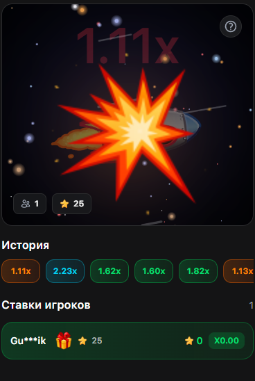 Внутри приложения можно найти еще 2 игры, которые популярны в разных онлайн-казино. Речь идет о краш-игре Ракета и Минах.
