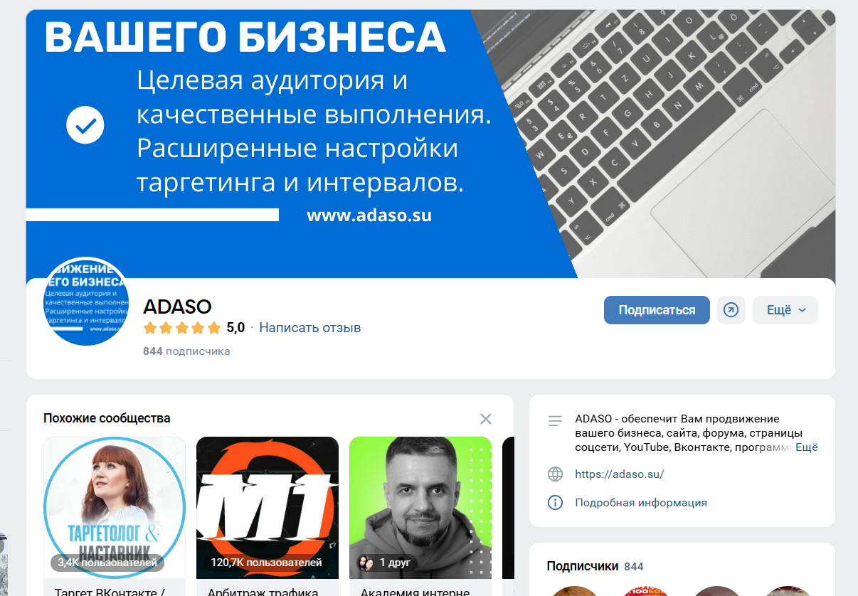 Проект представлен в социальных сетях. Есть у платформы свой телеграм-канал adaso su official. Однако, в нем всего одна запись и два подписчика. Вконтакте ситуация чуть лучше. Сообщество здесь набрало больше 800 человек, однако, активности никакой нет, да и владельцы группы ничего не публикуют. Очевидно, своими социальными сетями рекламная платформа не занимается, что выглядит странно.Условия сотрудничества
