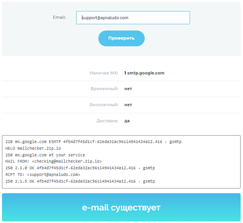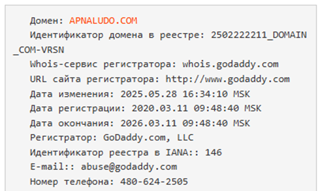 • электронная почта Support Apnaludo Com (проверка показала, что она действующая);