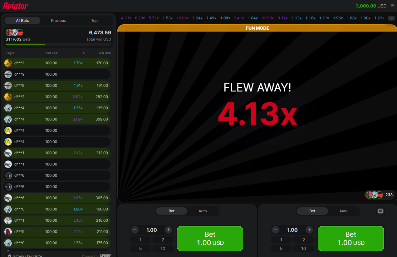 Это азартная игра жанра crash game от компании Spribe. Суть — сделать ставку перед началом взлета самолета, наблюдать за его полетом и ростом коэффициентов, после чего остановить его в конкретный момент, пока тот не улетел за пределы экрана, и забрать выигрыш.