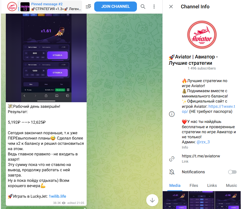 Официально в ТГ нет Авиатор бота. То есть все мини-приложения, которые копируют интерфейс оригинального Авиатора в Телеграме по сути фейковые. И нет гарантий, что там можно не то, что выиграть, а вообще не лишиться денег после пополнения счета. А особенно, если речь про канал с якобы «секретными стратегиями»: