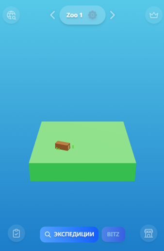 После первого запуска игры участник получает 10 бесплатных билетов для экспедиции. Вот так выглядит игровое поле, на нем будут появляться животные и здания.