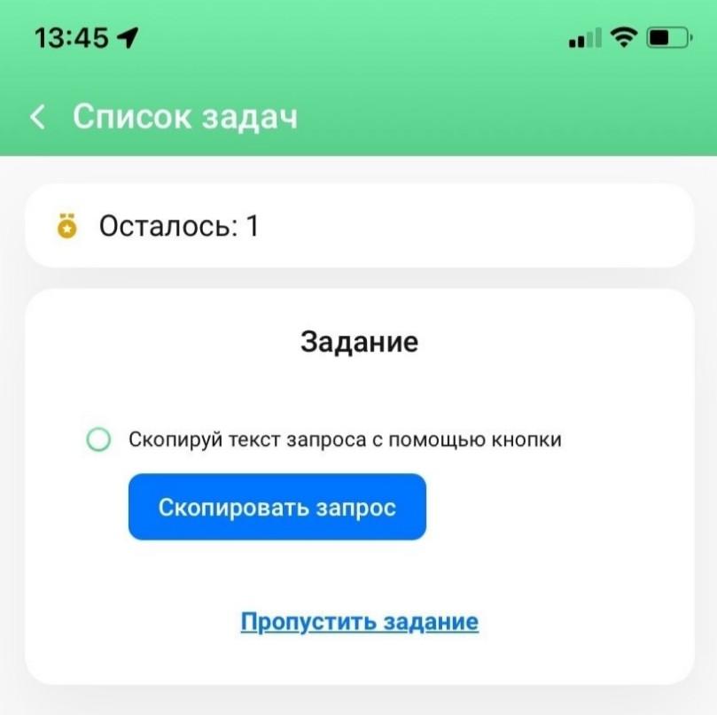 Задания появляются ежедневно в 12 часов по МСК. Чтобы взять в работу, нужно скопировать поисковой запрос в разделе «Список задач» и ввести его в магазине приложений App Store. Далее скачать программу и вернуться в «Бонустаск» за наградой.