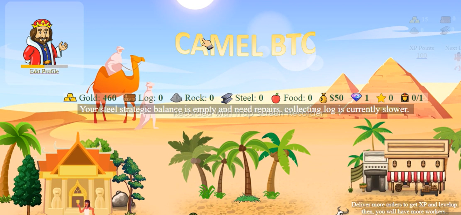 - Выполнять заказы, за завершение которых пользователи получают дополнительных верблюдов и опыт. Последний пригодится для повышения уровня.