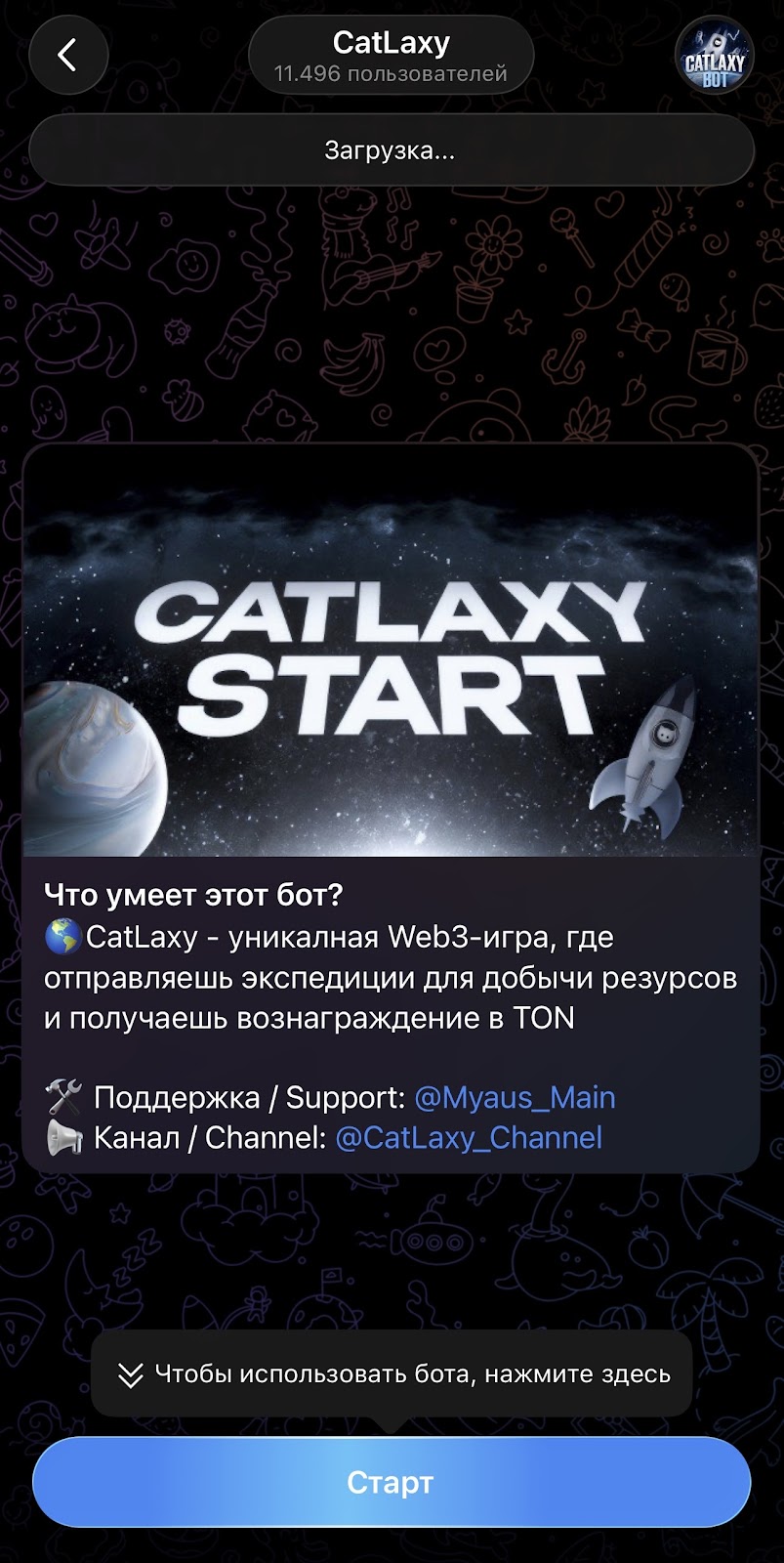 CatLaxy — кликер на базе мессенджера Telegram для любителей котиков, покоряющих космос. Разработчики обещают достаточно высокий доход — пара процентов за одни игровые сутки.
