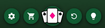 Club Bitcoin Solitair встречает игрока сразу на игровом поле. Цель игры — классический пасьянс: собрать колоду карт по мастям в четыре ячейки, от туза до короля. На нижней панели управления расположены пять кнопок:
