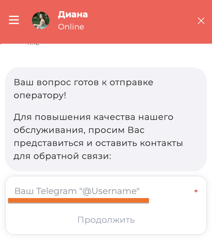 Сразу после приветствия онлайн-помощник просит предоставить юзернейм, чтобы в дальнейшем написать в личные сообщения. За поддержку пользователей отвечает некий opperatorcte, о котором мы не знаем ничего. Выглядит такой формат обратной связи крайне подозрительно.
