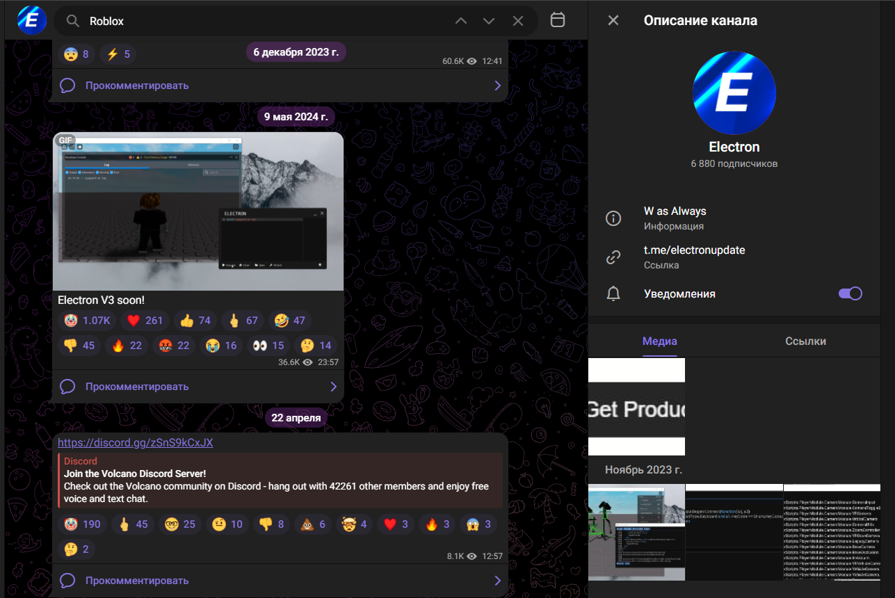 В Телеграмм «Электрон» встречаются и упоминания о том, что Electron V3 будет платным. При этом автор предупреждает аудиторию о мошенниках и напоминает, что софт еще не выпущен на рынок. Есть упоминания о Roblox, а именно о бане стрима сотрудниками. Полноценный справочный или навигационный пост отсутствует, интуитивно ориентироваться по материалам достаточно сложно.