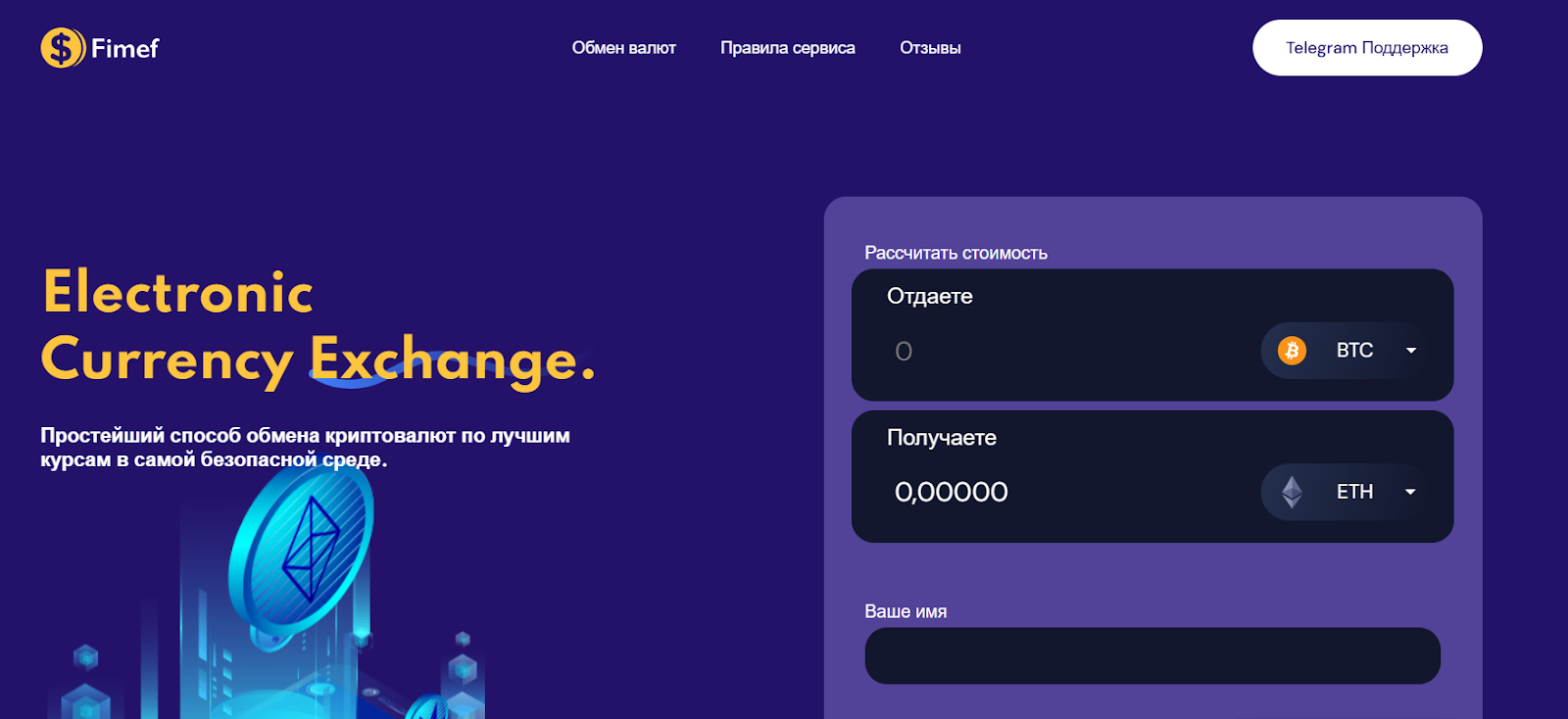 Fimef – площадка для простых и прибыльных операций с криптовалюту. Компания предлагает лучшие курсы, но в сети все больше негативных отзывов о ней. Мы решили разобраться, что происходит и стоит ли верить сервису.