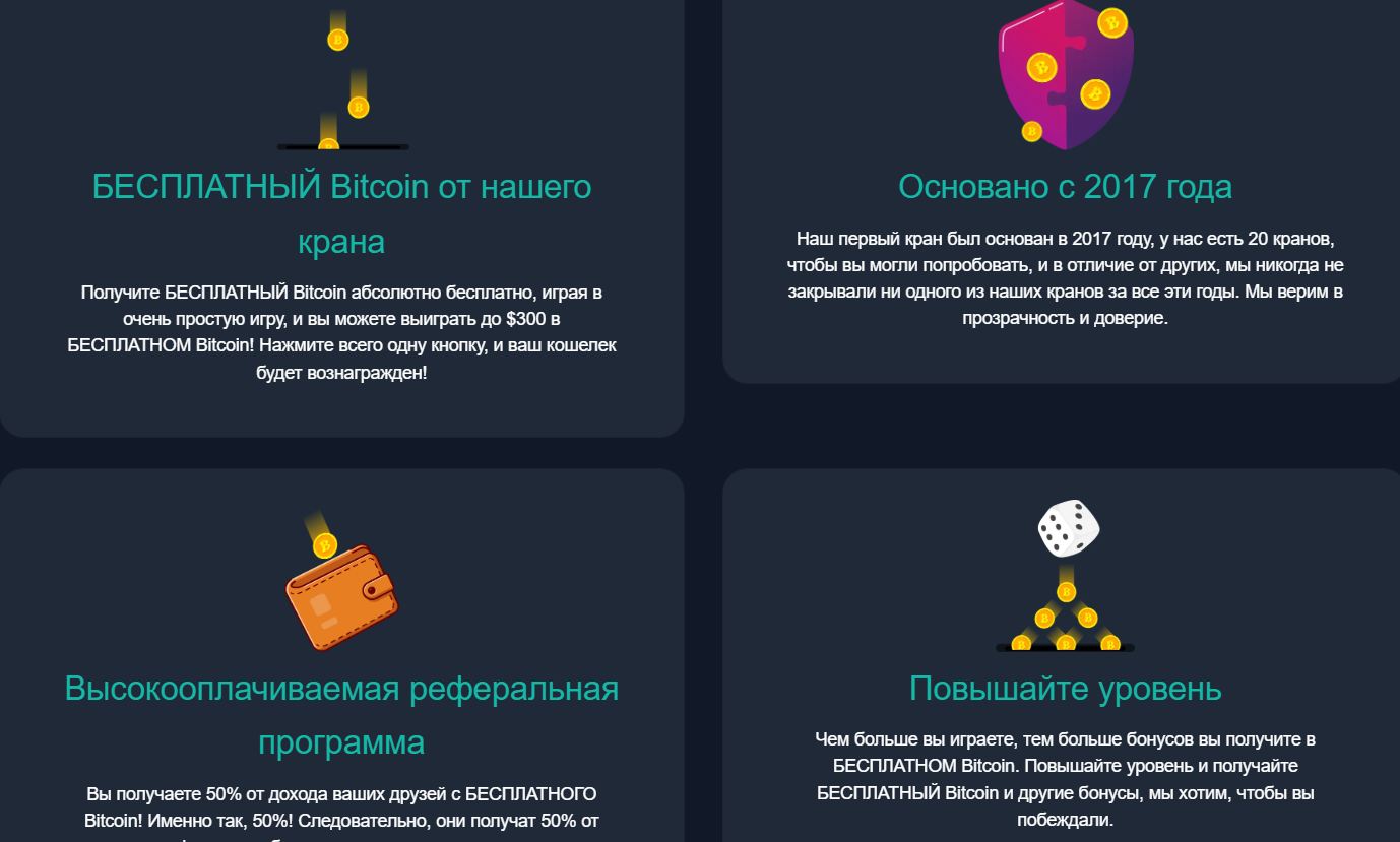 Freebitcoin – платформа по получению бесплатных биткоинов, созданная в 2017 году командой FreeCryptos. Разработчики утверждают, что играя на сервисе можно получить до 300 долларов в BTC. Обещают мгновенные выплаты и низкий минимальный порог вывода. Плюс присутствует реферальная система, которая, со слов создателей, приносит до 50% дохода.