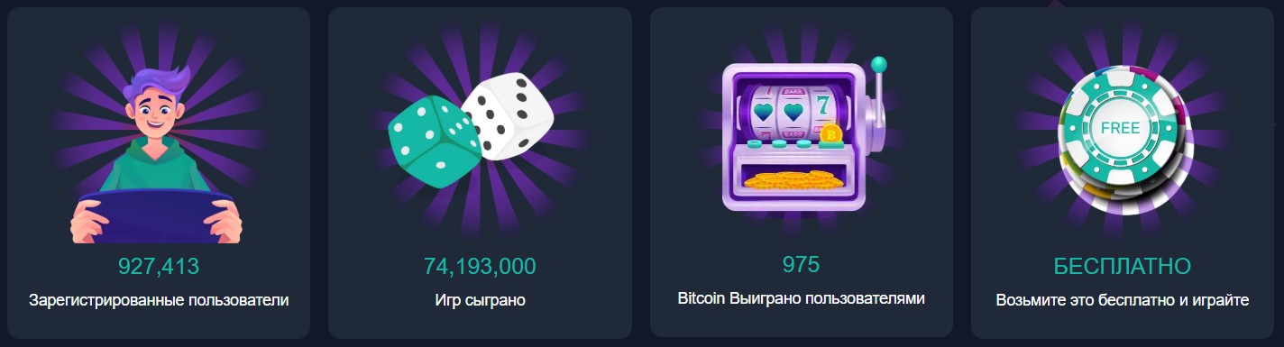 Вновь напоминают о бесплатности проекта, но подобная статистика не может полностью удовлетворить потребность в доказательстве эффективности игры. К тому же, дальше разработчики говорят сомнительную вещь. Они утверждают, что их игры “доказано справедливы”, “не подтасованы” и “не обманывают”. Подобные утверждения исключают возможный риск, который безусловно имеется, т.к. механика игры – это классическое казино. Обещают 100% гарантии, но сквозь строчки видно явное противоречие.