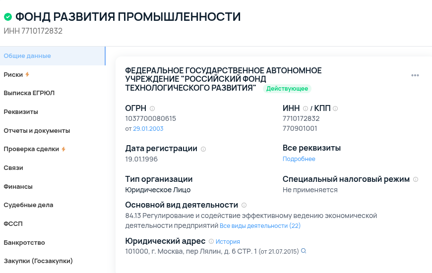 Как бы там ни было, негативного фона в стиле «скам» вокруг фонда нет (уже неплохо). Контора финансируется напрямую из бюджета и встроена в систему российского Минпромторга. Здесь проблема не в том, что деньги исчезают, а просто доступ к ним ограничен и получить их удается далеко не всем.