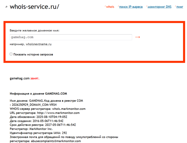 В ходе проверки важно проверить срок работы сайта. Доменный адрес Game Hag зарегистрирован в 2016 году. С тех пор он принадлежит рассматриваемой площадке. В течение срока существования на сайт добавлялись изменения, но сам сервис продолжает работать. Известно, что доменное имя продлено до 06.05.2027 г.