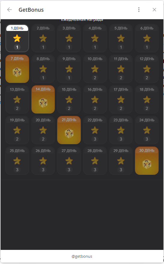 Еще один бонус — ежедневная награда в виде телеграм-звезд. Тут можно забрать от 1 до 3 старсов при наличии Premium-аккаунта.