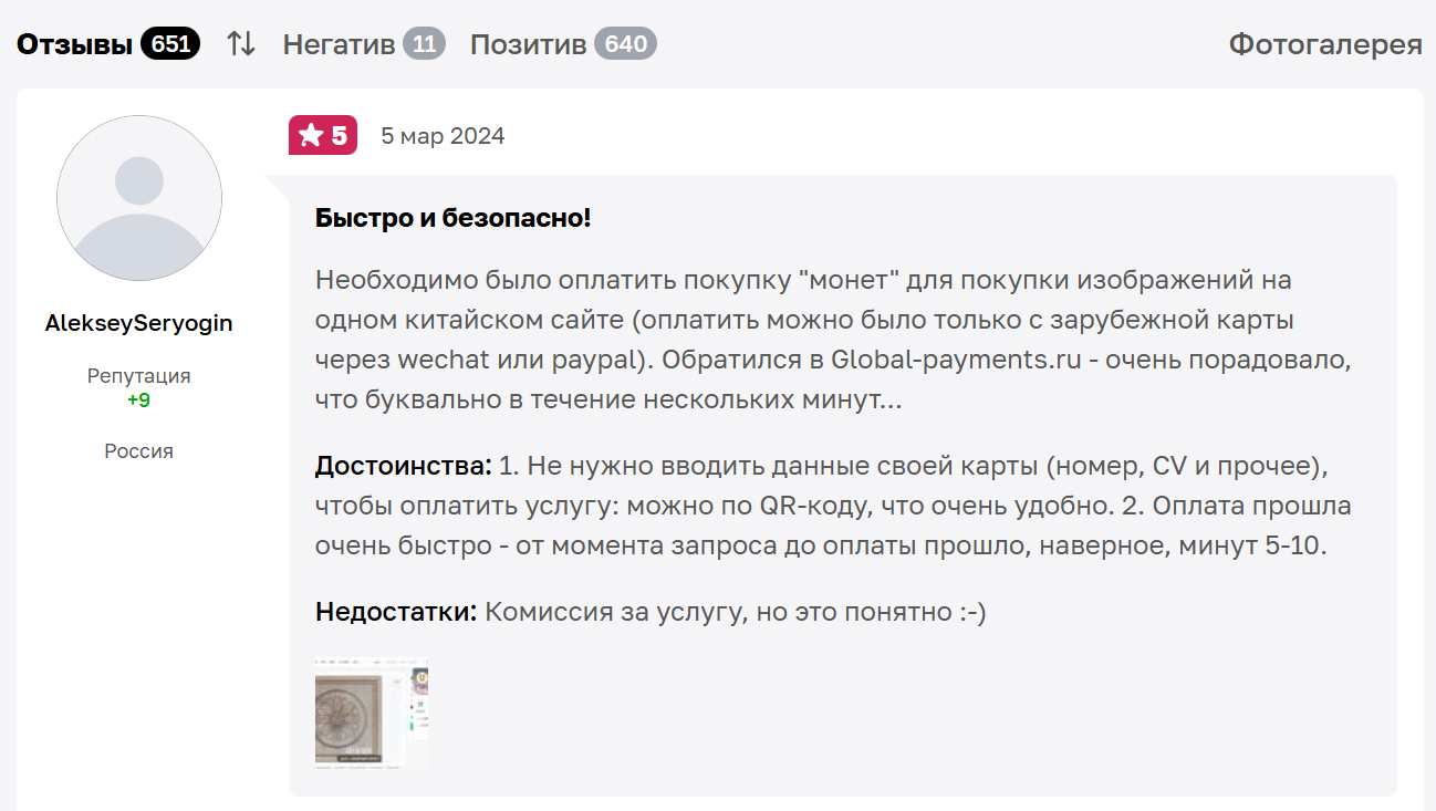 О сервисе «Глобал пейментс» отзывы встречаются преимущественно положительные. На Отзовике 11 негативных откликов и 640 позитивных. Преимущественно указывается, что сервис выполнил свои обязательства, все прошло быстро и без проблем. Комментарии встречаются за несколько лет работы сайта, поэтому репутация поддерживается постоянно. В то же время, негативные отзывы о Global payments ru указывают, что оплата не пришла и деньги не вернули. Это не многочисленные комментарии, но их также следует учесть.
