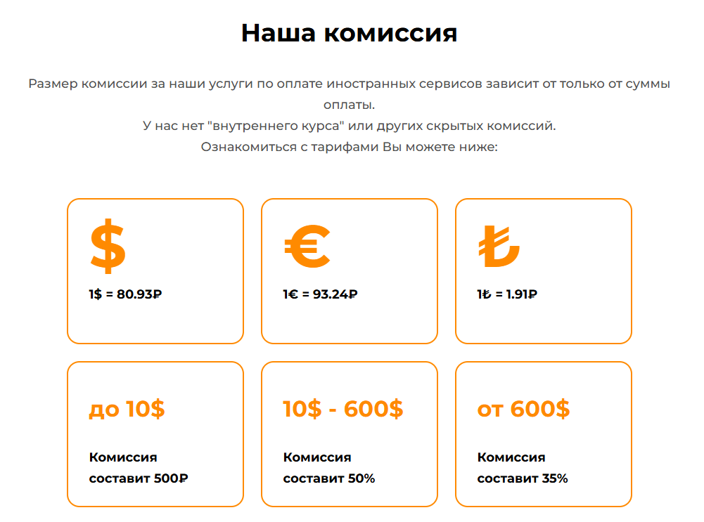 В платежной системе отсутствует свой внутренний курс иностранных валют, а также дополнительные комиссии, включая скрытые. Актуальные курсы валют указаны на официальном сайте и их можно сравнить с официальными в банках. Комиссии выглядят следующим образом:
