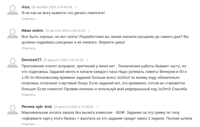 Негативные отзывы о приложении «Гуру Апп» выглядят куда более реальными. Люди жалуются на зависания сервера, сбои с зачислениями и «исчезающие» задания. Некоторые пишут, что после публикации негативного комментария баланс перестал обновляться или пропала возможность вывести деньги.